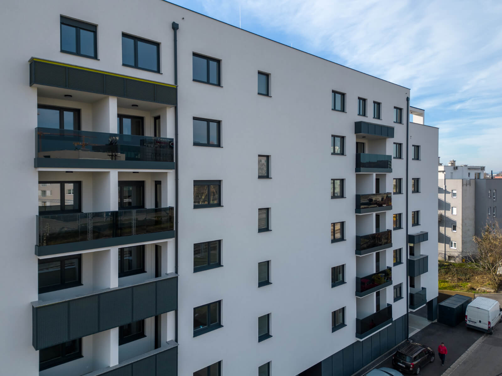 Gradnja je započela u 12/2018., a radovi su završeni u 02/2020. Svi stanovi u zgradi su prodani.